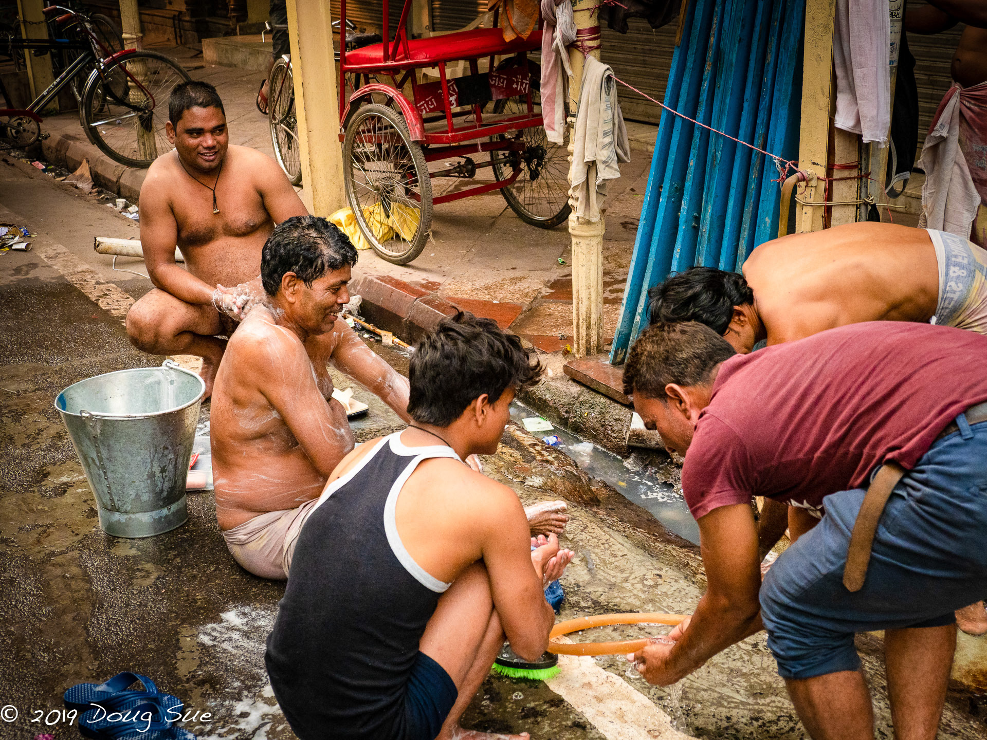 Bathing in the street.