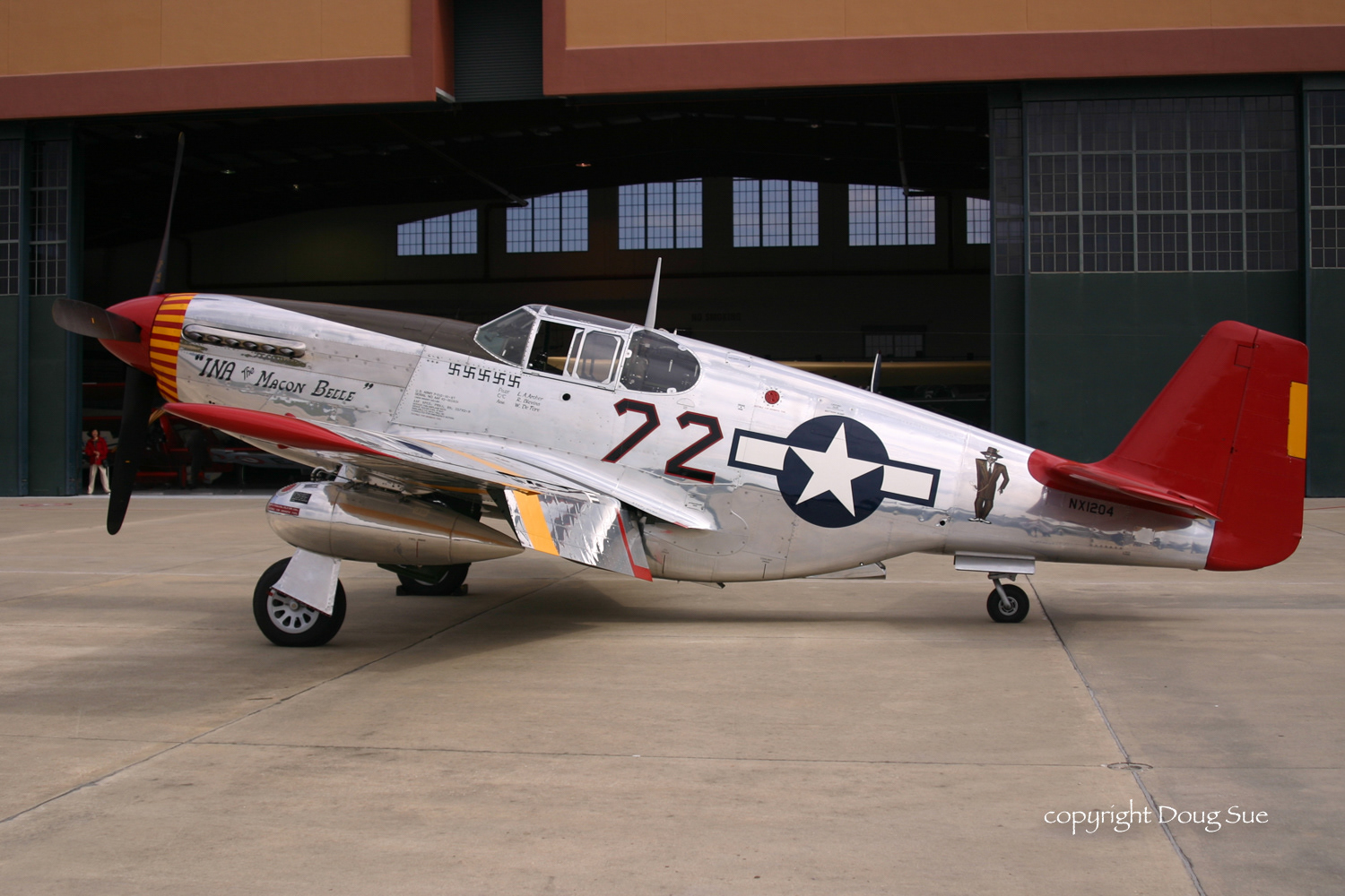 Red tail P-51 in honor of the Tuskegee Airmen. Fantasy of Flight, Polk, Florida. This aircraft was stripped to the frame and completely rebuilt.