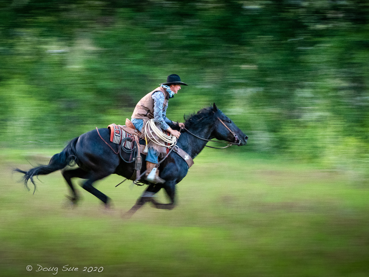 This is an example of the panning technique in photography, blurring the horseman, who was probably galloping at about 40 mph.