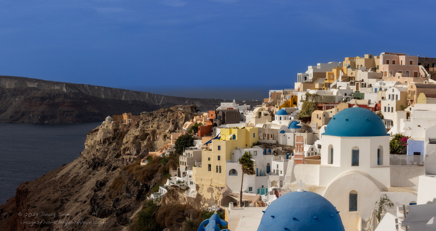 A classic image of Oia. The location that it was shot from is well-known -- much like a Kodak Picture Spot. The trick is to get good weather and pleasing composition.