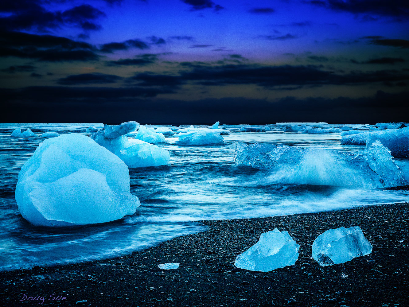 And the Land of Ice. Glacier fragments washing up on the beach.